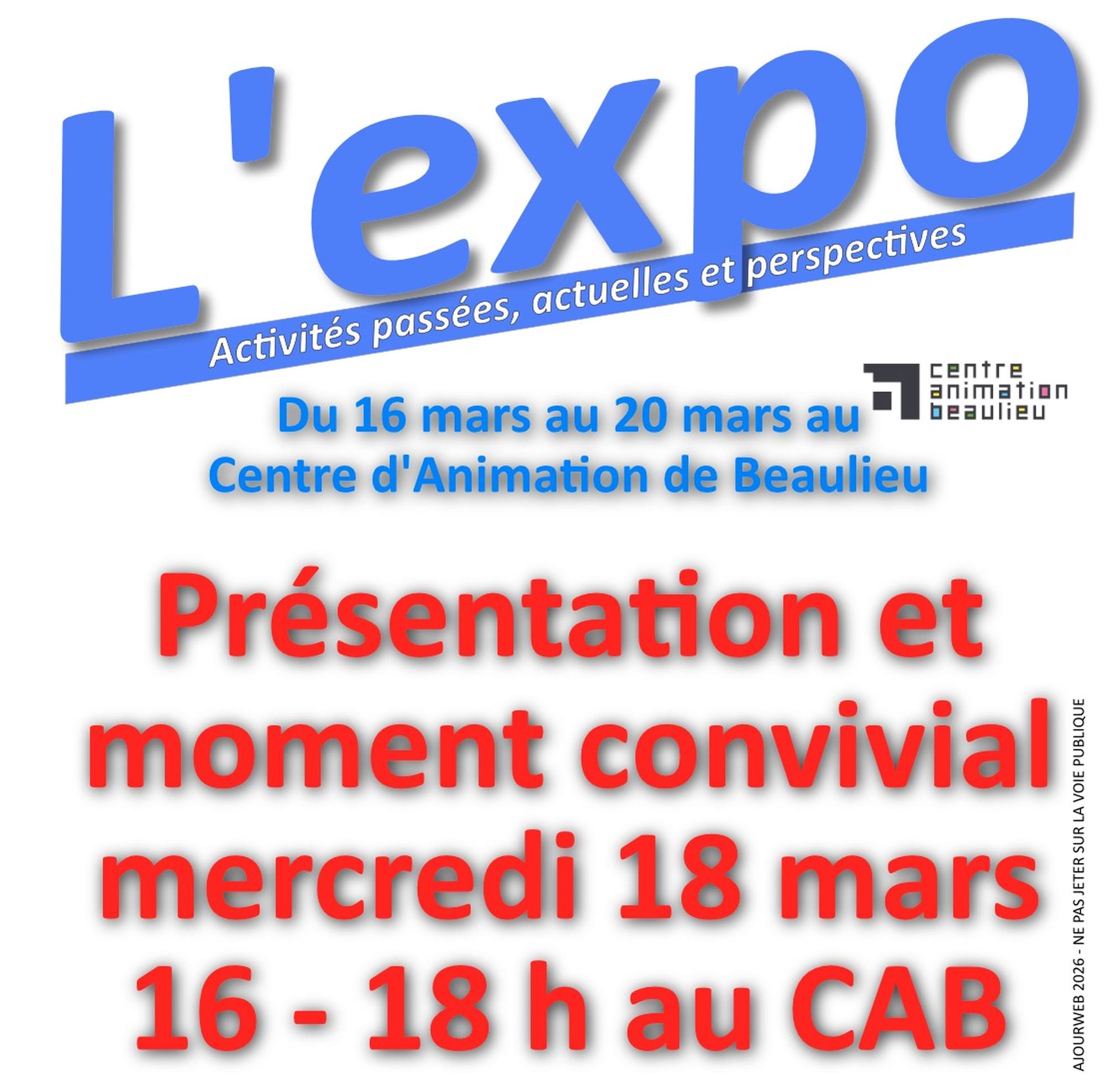 Ce mercredi 18 mars au CAB (dans le hall) vous êtes invités à un moment convivial à partir de 16h pour la présentation de l’exposition des 10 ans du Collectif des Habitant·es de Beaulieu. Au programme: présentation des activités passées présentation des activités en cours et des perspectives boissons et gâteaux (et ce jusqu’à 18h !) Le Collectif sera heureux…